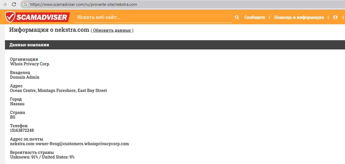 Более скудных контактов как у мошенников Nekstra ещё не было