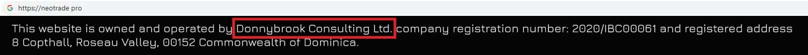 Юридическое лицо Donnybrook Consulting Ltd владеет веб-сервисом NeoTrade Pro, главная цель которого, отъем денежных средств у доверчивой части онлайн-сообщества.