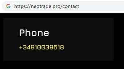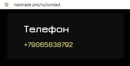 Жулики Neo Trade на своем дырявом сайте указали номер контактного телефона, с которого навязчиво названивают потенциальным жертвам: