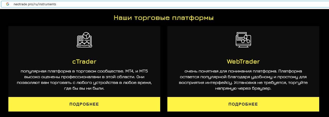 - Торговая платформа на сайте мошеннической организации Neo Trade
