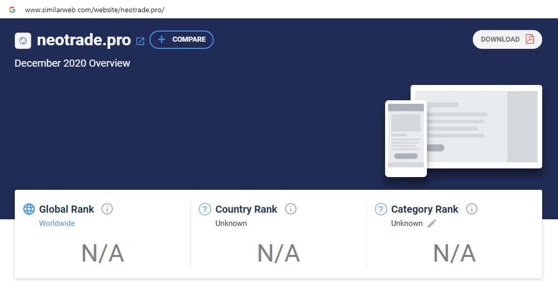 При проверке источников бренда по странам компании Нео Трейд на сайте similarweb com, информация отсутствует, что является признаком фальшивого лохотрона.