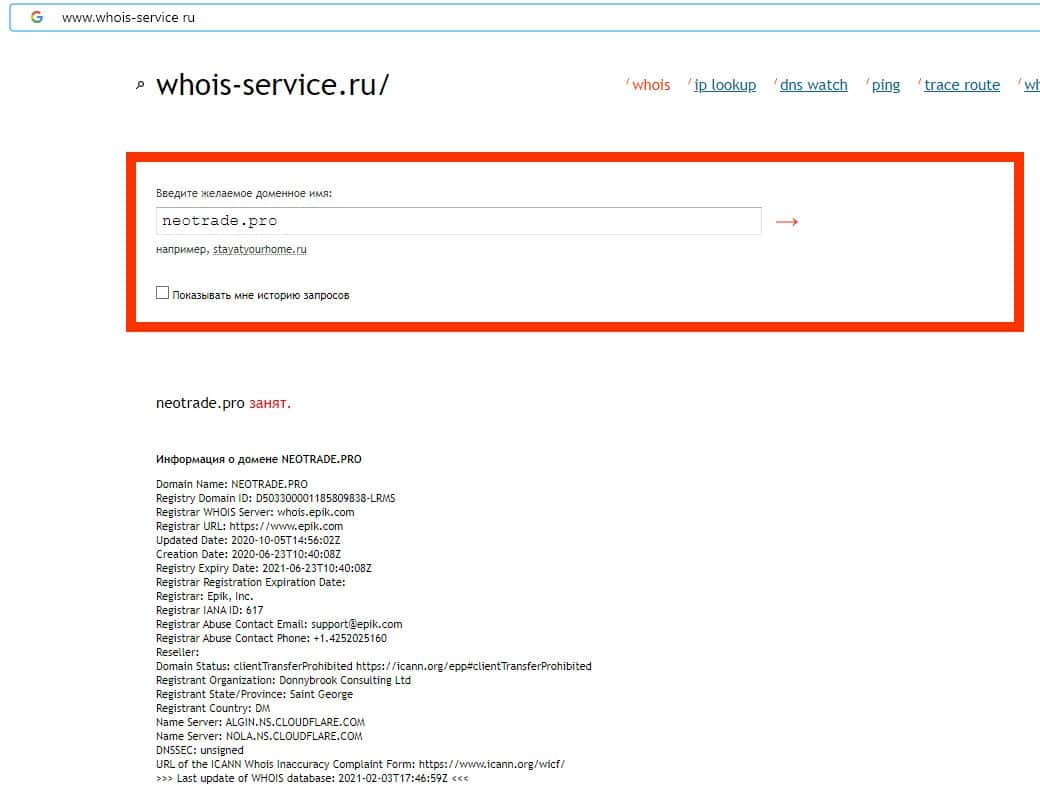 Данные о владельце домена скам-конторы Нео Трейд отсутствуют