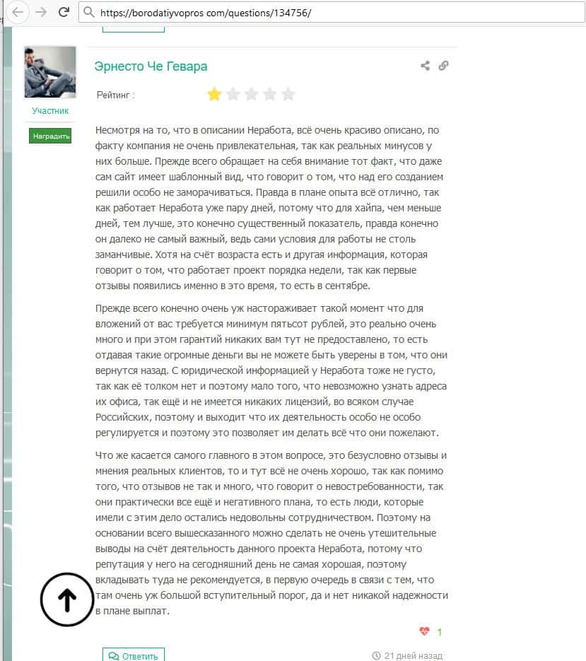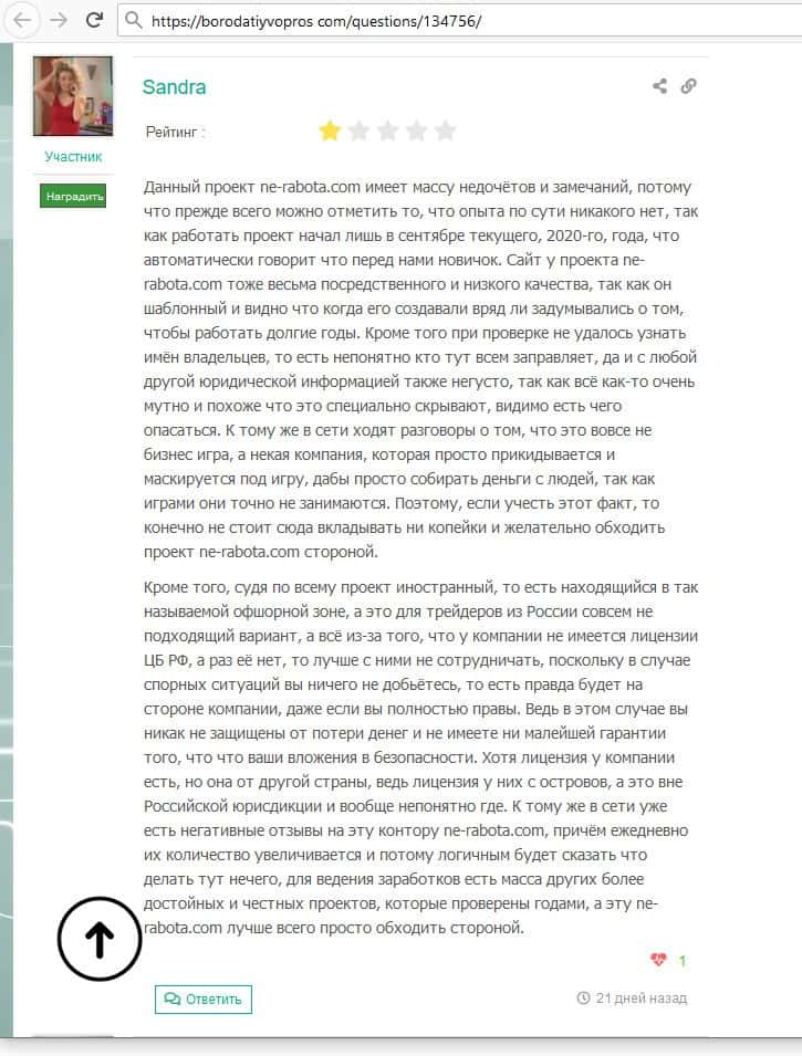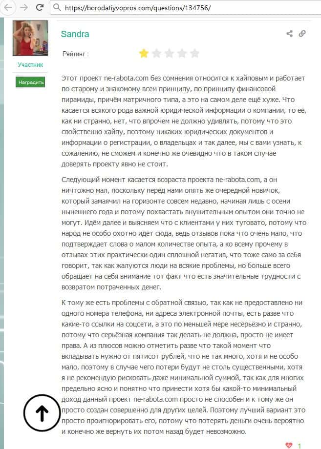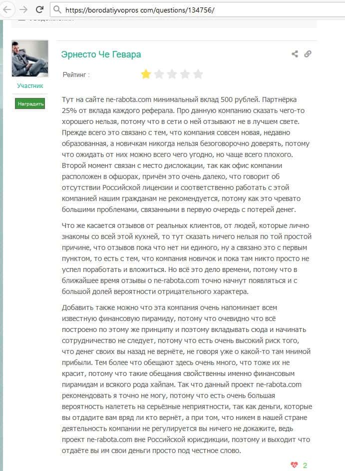 Негативные отзывы о лохотроне Ne Rabota