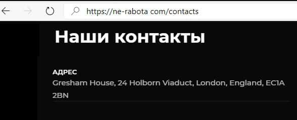 Мошенники обосновались подальше от будущих обманутых вкладчиков - на их сайте вы сможете увидеть только адрес НеРабота в Лондоне.