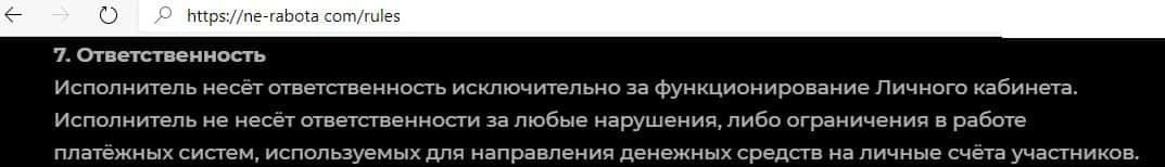 При изучении сайта НеРабота каждому становится понятно, что перед вами очередная пирамида с большой минималкой и сложными условиями для вывода денег.