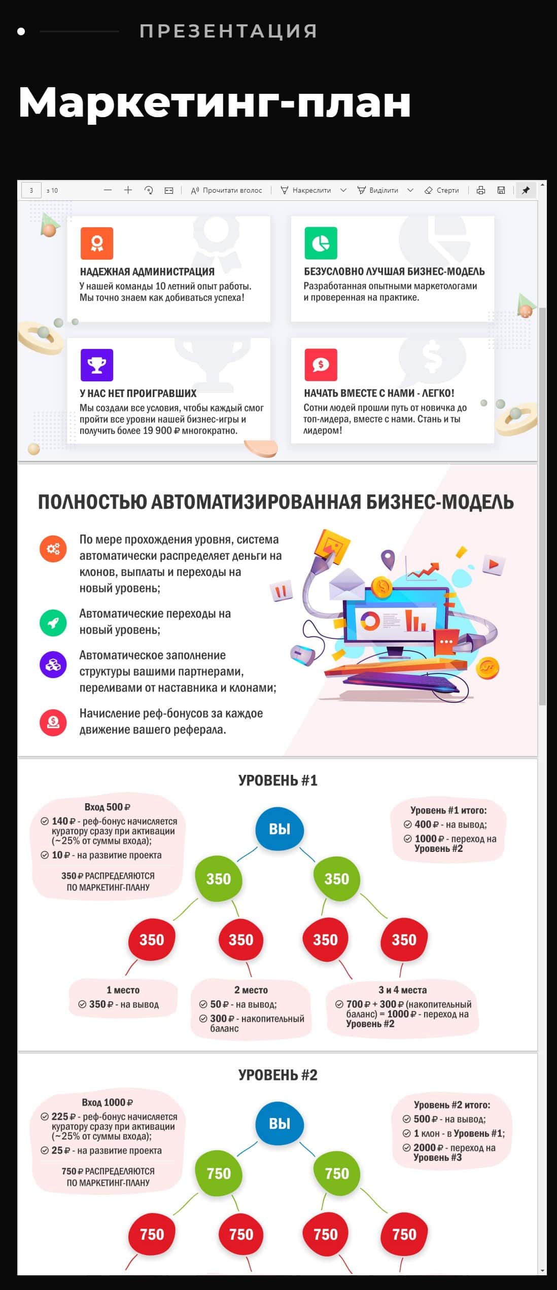 В свой презентации лохотрон НеРабота подробно нарисовал схему своей пирамиды, с помощью которой он планировать обманывать будущих вкладчиков.
