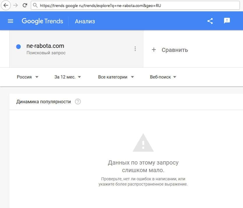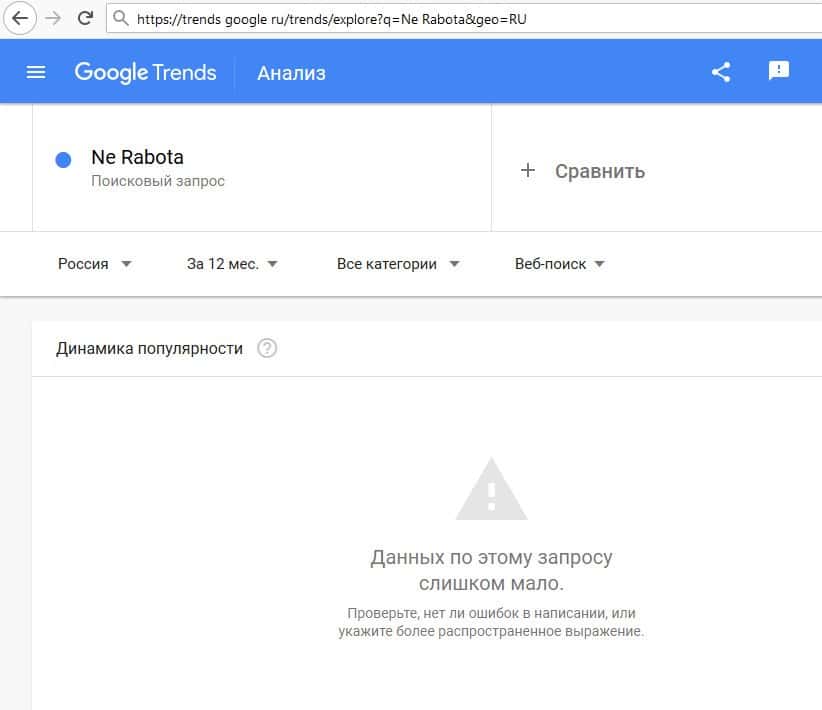Не интересовало и пользователей Гугла и полное название домена "ne-rabota.com".