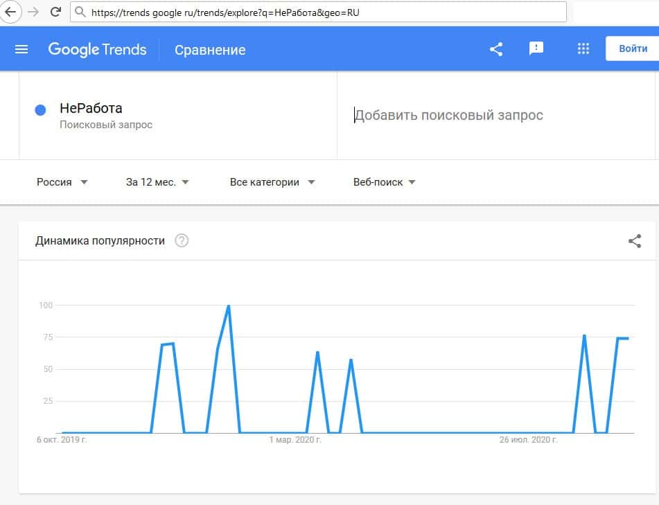 Число запросов о жуликах Ne Rabota в поисковике Гугл