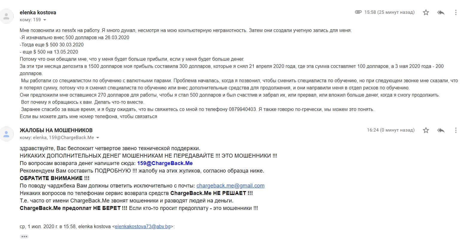 - Жулики NessFX боятся ответить на письмо клиента