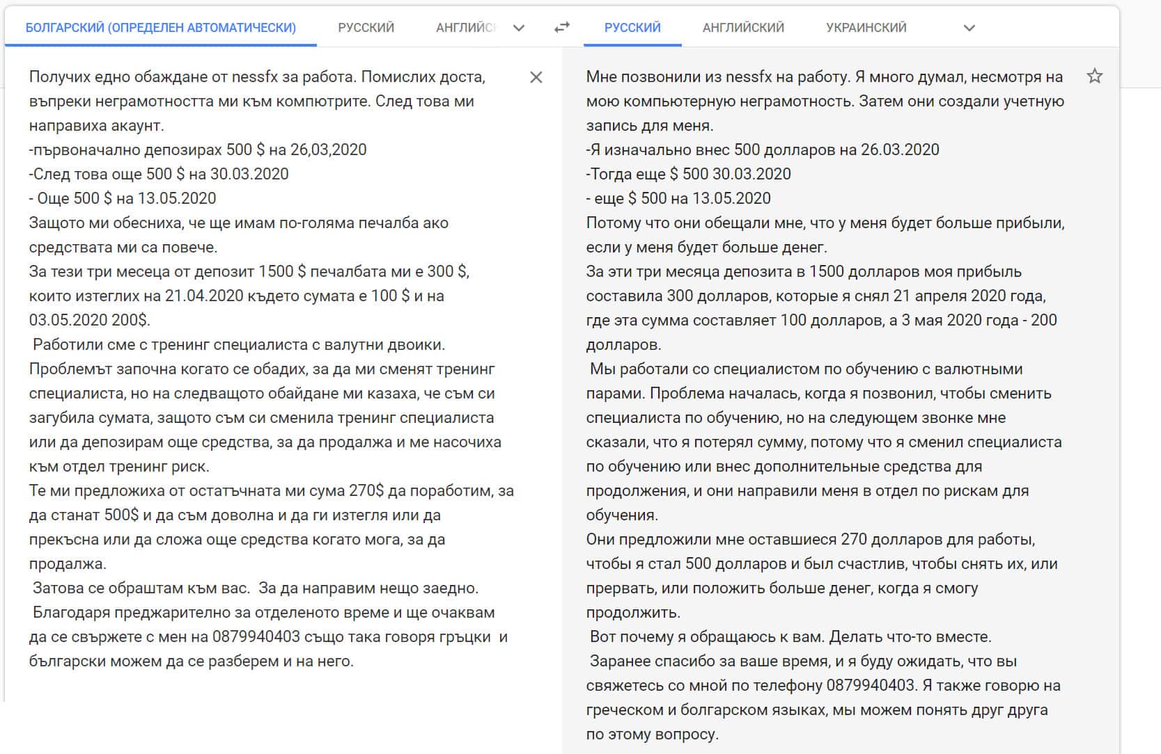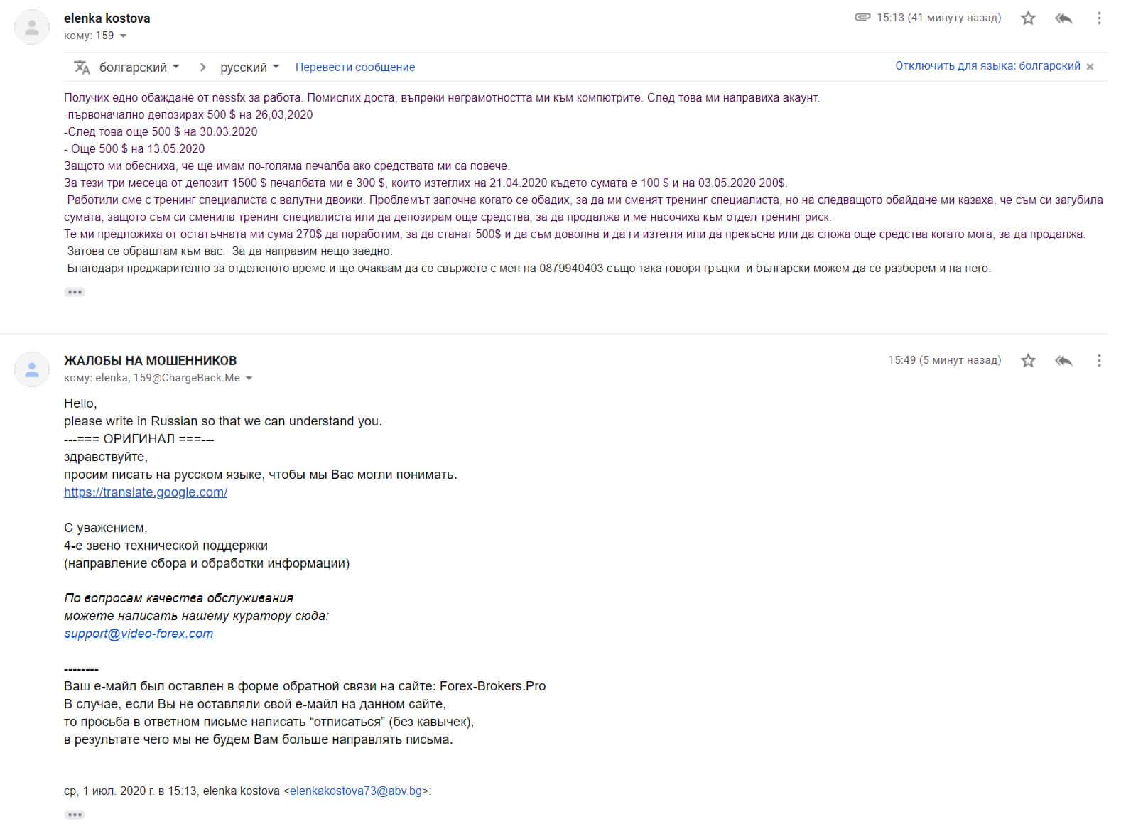 Спустя некоторое время на емайл сайт-разоблачителя мошеннических организаций, пришло письмо с данной жалобой уже на русском языке.