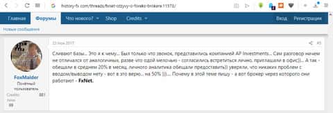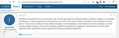 На форуме history-fx пользователь Igoral1986 рассказал о своей плачевной истории, как он доверился этому брокеру, поведясь на разговоры о сверхвысоких доходах при минимальной физической и умственной работе, и решил закинуть 2000$ на счет этого брокера-мошенника. В итоге получилось, что эти 2000$ просто исчезли со счета клиента.Несс ФХ сливает базу клиентов другим мошенникам