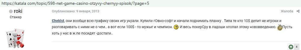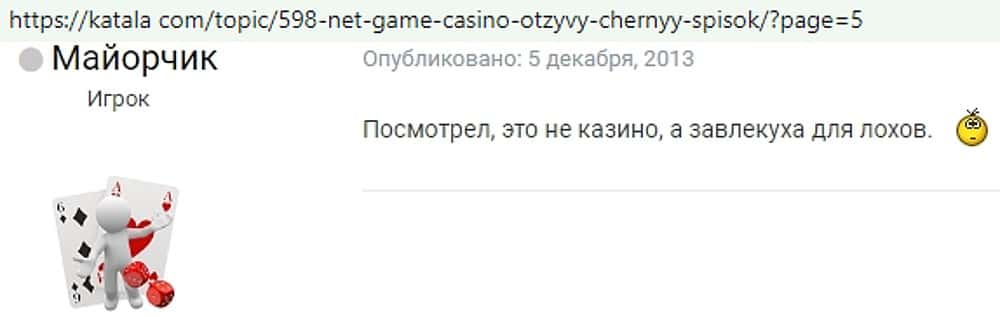 Дешевую интернет-пародию на игровой онлайн-зал распознают в недопроекте Нетгейм Казино многие, о чем спешат поделиться со своими собеседниками на страницах веб-форума.
