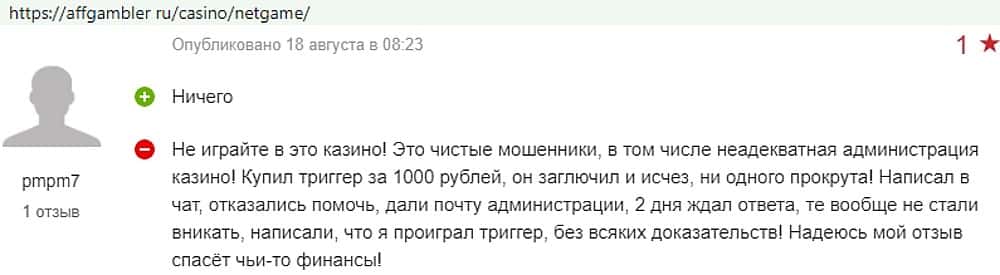 Комментарии и отзывы о прохвостах Нетгейм Казино