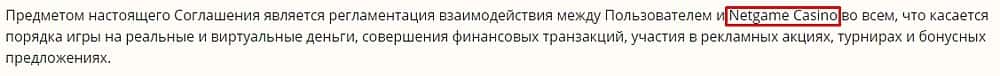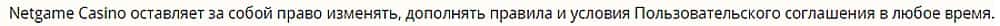 Причем стоит заметить, что каталы Netgame Casino даже два раза прописали это правило в разных пунктах. Или плуты в спешке намолотили кривой договор, или внесли его намеренно.