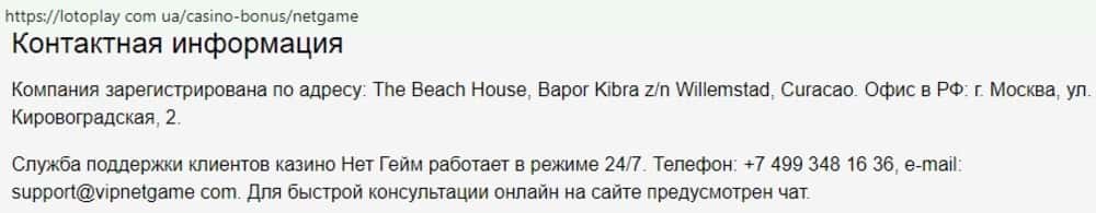 Однако и это не все. Другой ресурс раскрыл номер телефона, московский адрес пройдох, а также почту во втором домене, с которого сейчас идет переадресация на сайт netgameslots com: