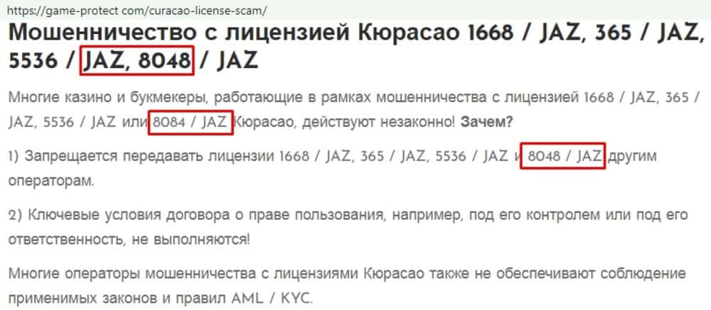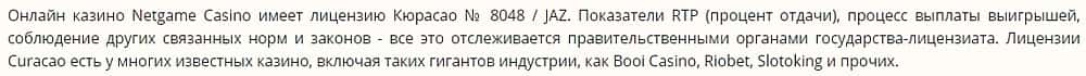 Злоумышленники игровой индустрии Нетгейм Казино утверждают, что имеют лицензию 8048/JAZ, выданную в Кюрасао, которая якобы позволяет заниматься их деятельностью.