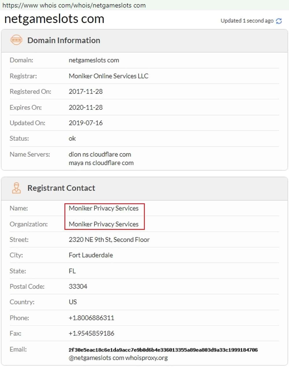 Лицо, владеющее доменным именем, которое привязано к игролохушне Netgame Casino, предпочло остаться неизвестным, задействовав для этого сторонний веб-сервис приватности.