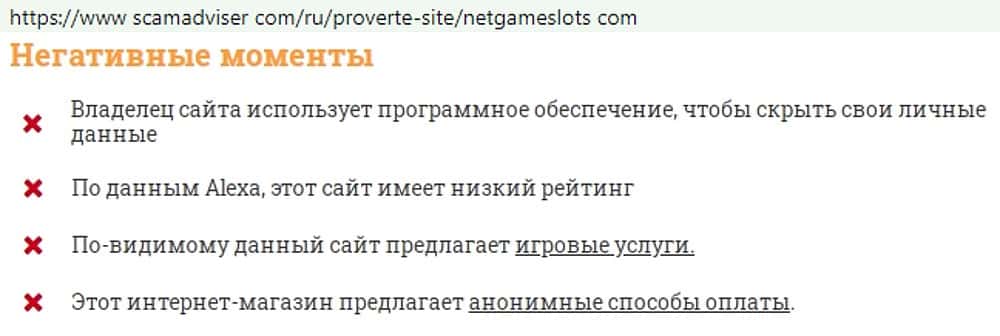 Информация о подозрительном игровом сервисе Нетгейм Казино
