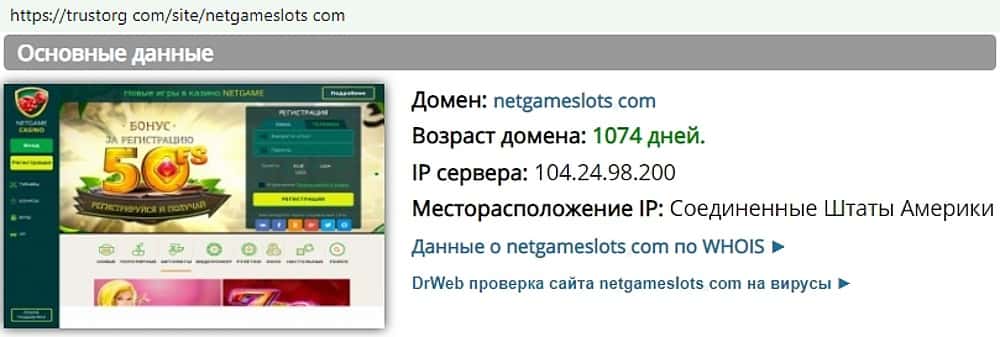 - Возраст домена интернет-лохопритона Нетгейм Казино
