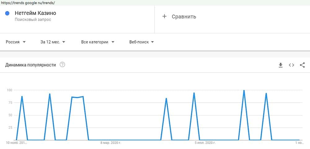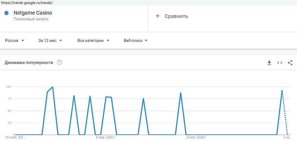 И снова прорыв в популярности у гэмблинг-проходимцев. Их сомнительный игровой хайп с некоторой периодичностью, почитатели компании Google искали по запросу "Нетгейм Казино".
