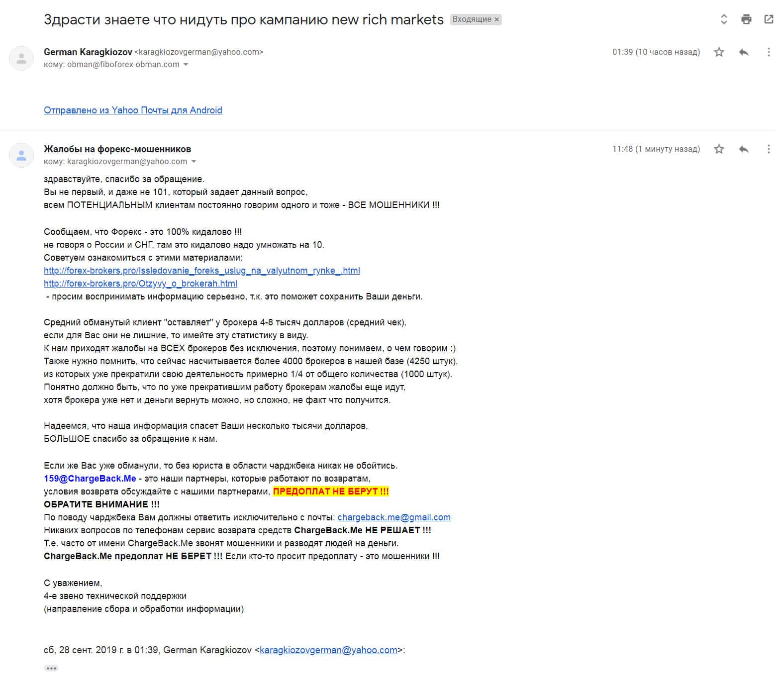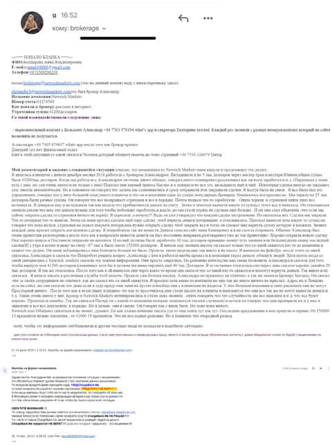 Подробная жалоба на контору НьюРич Маркетс - утрачено как минимум 40 000$