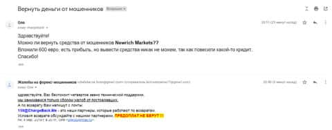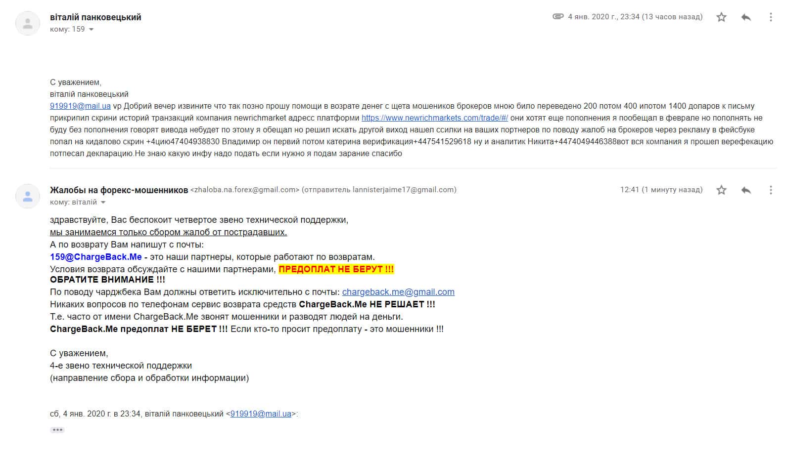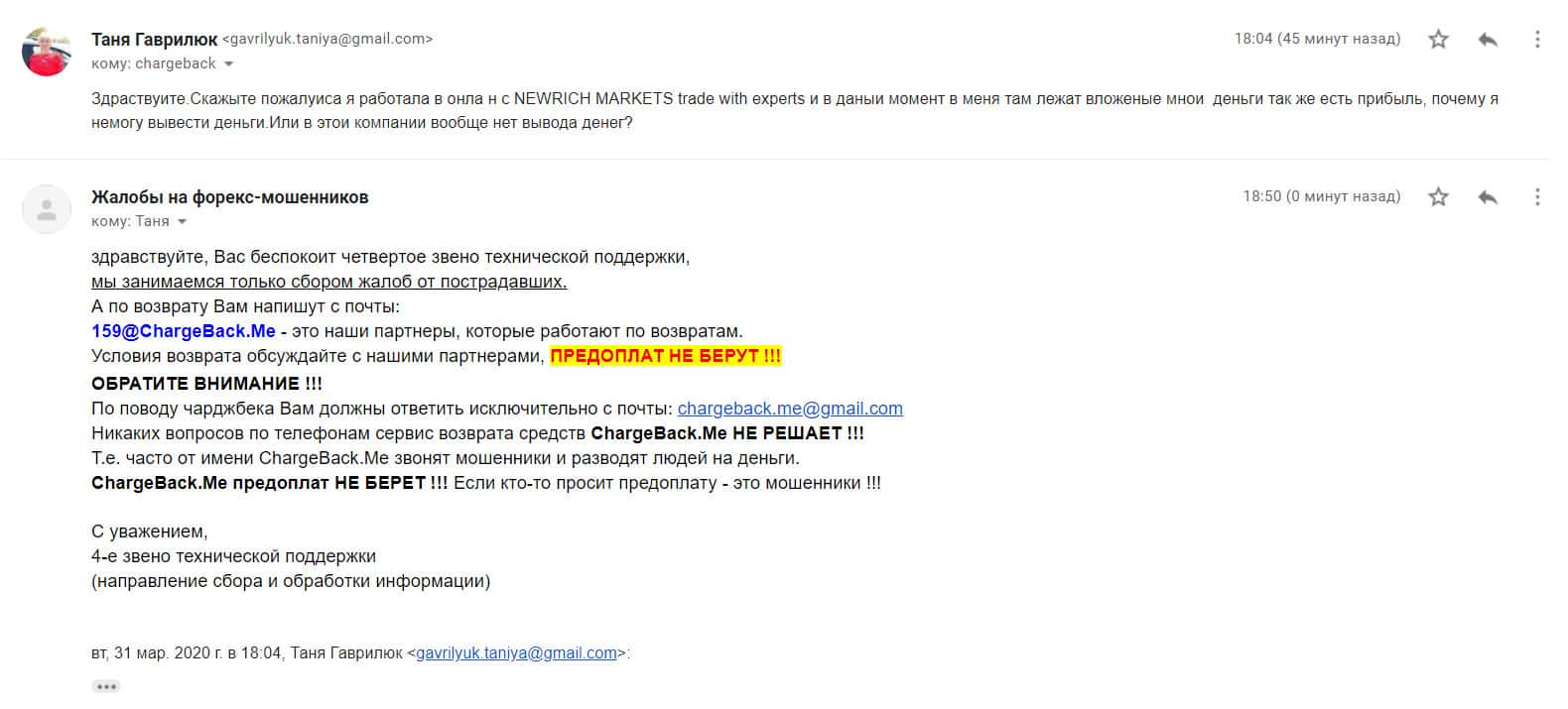 - Жулики Newrich Markets пытаются развести клиента на 200 долларов США