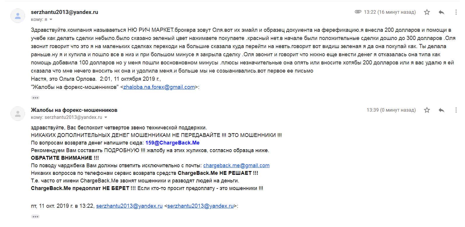 Кидок в размере 200 долларов от аферистов НьюРичМаркетс