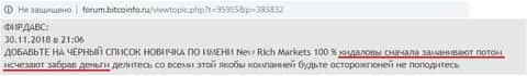 На сайт по сбору информации о брокерах-мошенниках пришла очередная жалоба на NewRichMarket