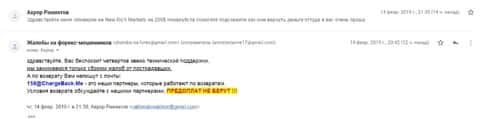 Жалоба на аферистов НевРичМаркет - клиент потерял 50 000 долларов