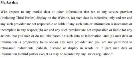 Договор - это лицо компании. И когда контора пишет, что она не несет ответственности в каком-то спорном случае, то возникает вопрос: "а кто тогда ее будет нести?". Вот тут то все шишки и падают на потерпевшего. Оказывается, все котировки и данные о торговле, которое в чистом виде должна предоставлять кухня Нев Рич Маркетс своим клиентам, может быть не совсем точной, или вообще произойти сбой. В этом случае шарага себя обезопасила и умыла заочно руки.