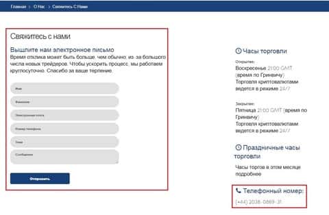 Попав в подраздел "О нас" Вы увидите только два поля "Свяжитесь с нами" и "Телефонный номер". Но совсем отсутствуют хоть какие-то другие данные. Да мы конечно понимаем, что телефонного номера достаточно, но все это как-то очень подозрительно, тем более что контора работает, по их словам, больше 10 лет. Значит это одно показывает, что кухня Нев Рич Маркетс не благонадежный брокер. А вот, соответственно, и номер телефона: +442038086931.