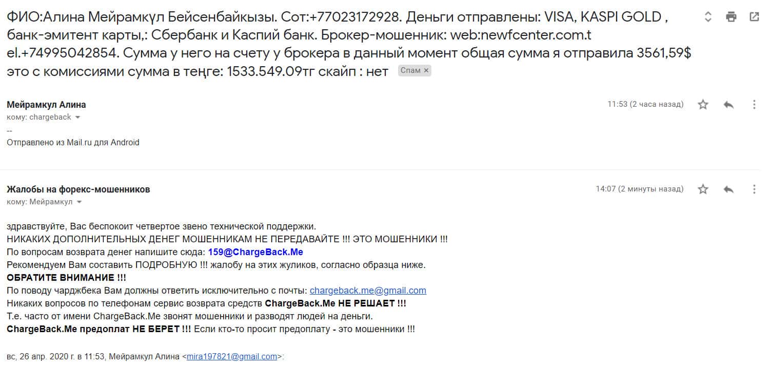 - Информация о мошенниках NewFCenter от пользователя всемирной сети
