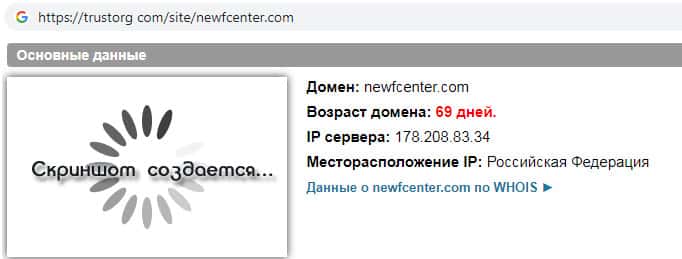 На информационном сайте trustorg com была замечена информация о том, что домену сайта мошенников НФ Центр всего лишь 69 дней, а местоположение ip-адреса жульнической организации находится на территории Российской Федерации, а не на Маршалловых островах, как утверждают аферисты NFCenter.
