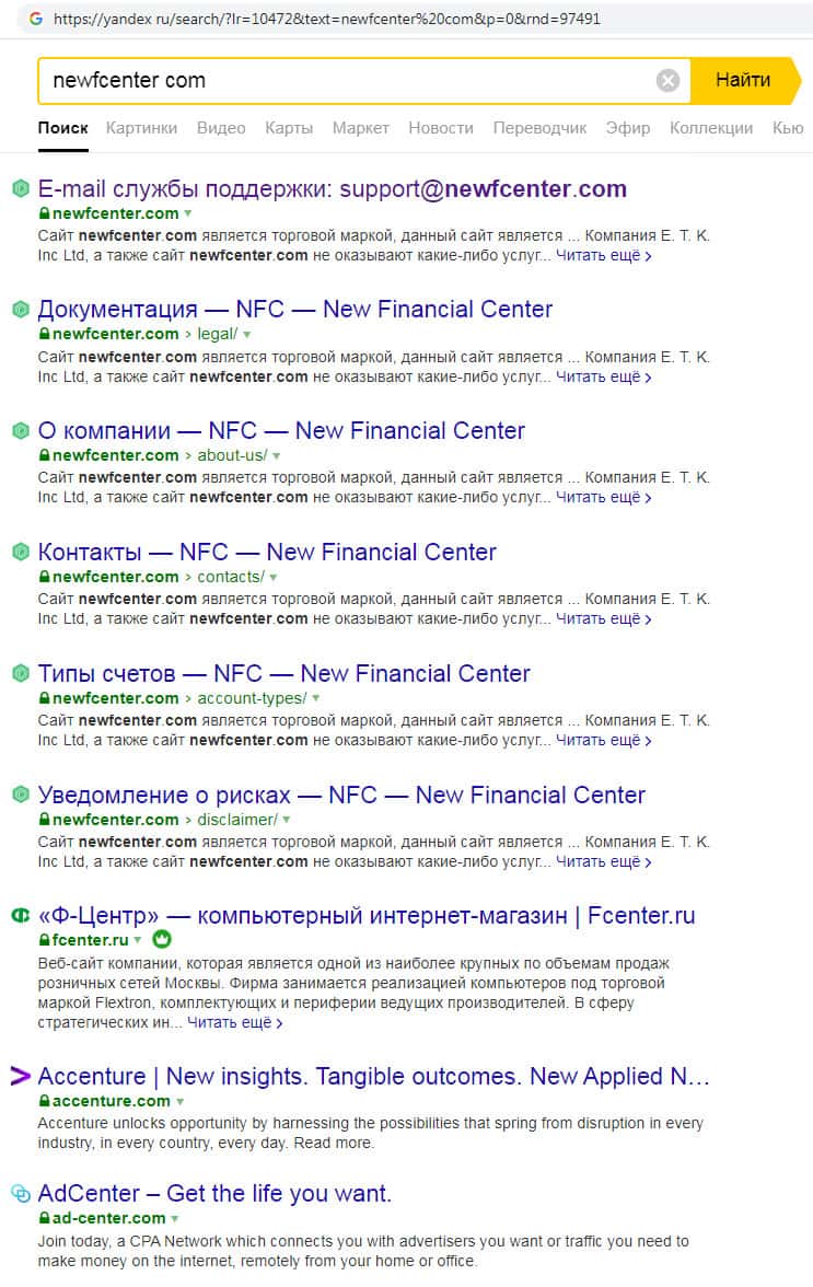 - адрес электронной почты брокерской конторы NewFCenter Com: infohelp@support10it com