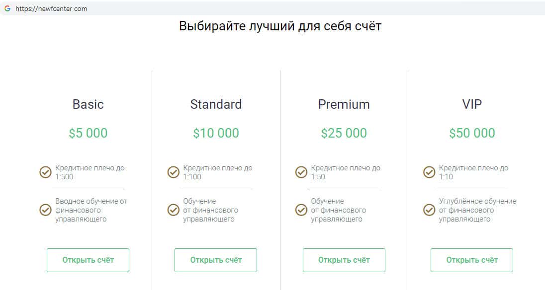- Возможность получения прибыли на сайте мошенников NFCenter никак не зависит от выбранного Вами торгового счета