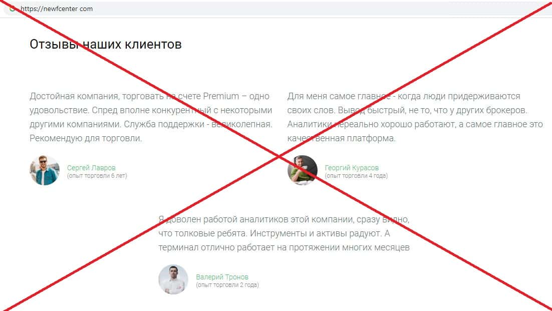 На сайте скам-брокера NewFCenter обнаружены проплаченные пользовательские отзывы