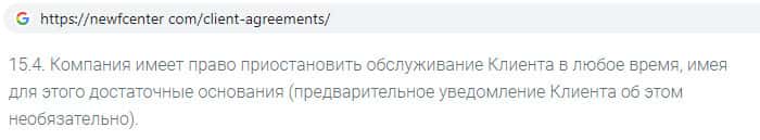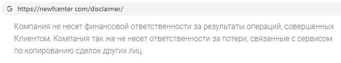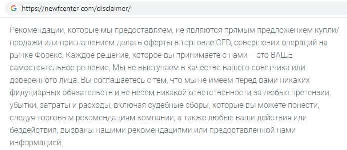 - Отказ от ответственности на сайте жульнической конторы NewFCenter