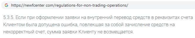 Регламент осуществления неторговых операций на сайте скам-брокера NFCenter