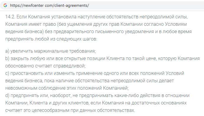 Клиентское соглашение на веб-ресурсе брокера-мошенника НФ Центр
