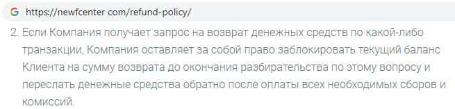 - Политика возврата денежных средств на сайте мошеннической организации НФ Центр