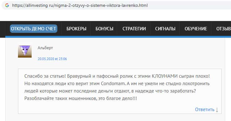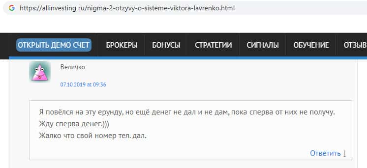 - Мнение сайта allinvesting ru о лохотронщиках Нигма 2
