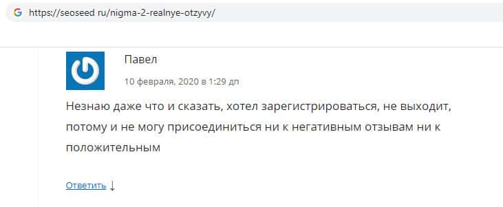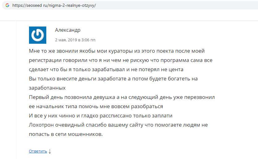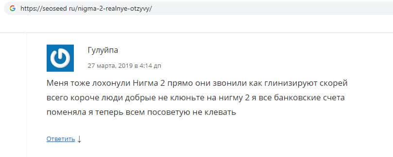 seoseed ru - интернет ресурс с отзывами о мошенниках Нигма 2