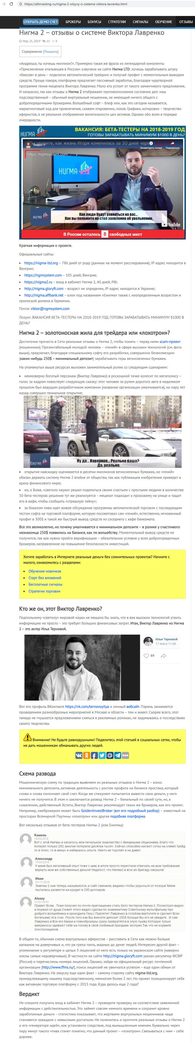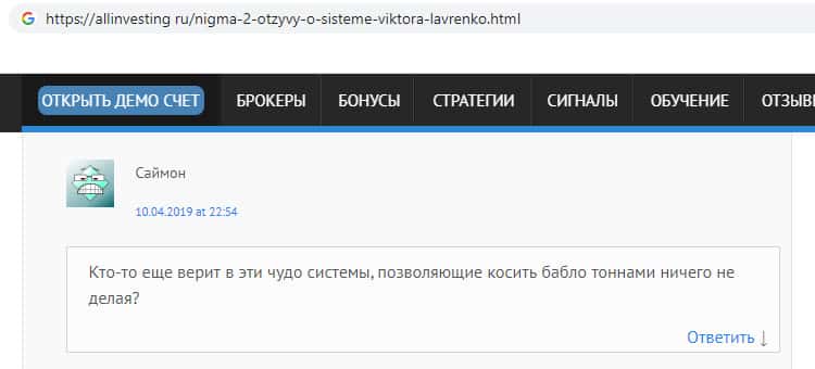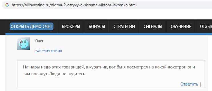 Мнение сайта allinvesting ru о лохотронщиках Нигма 2