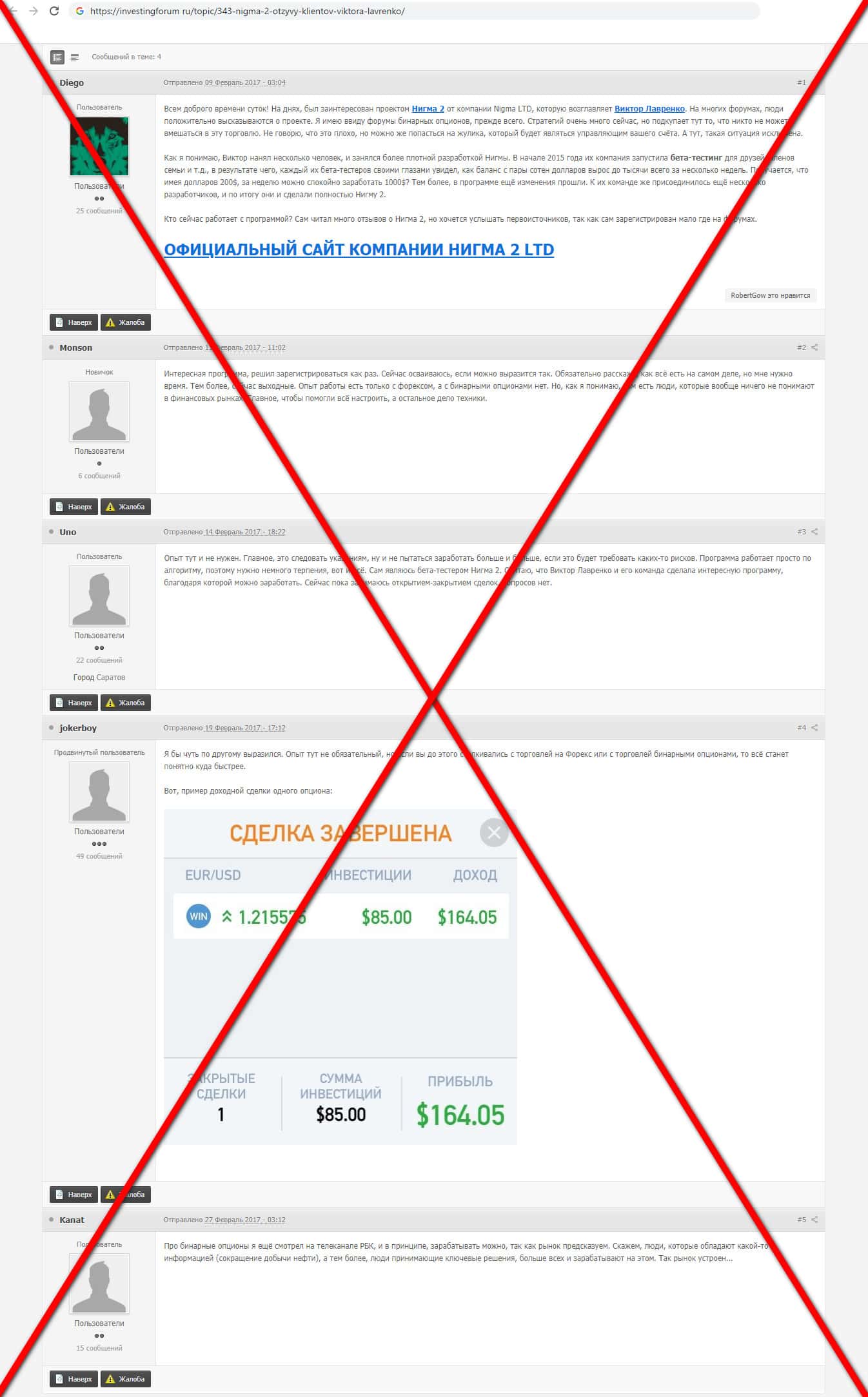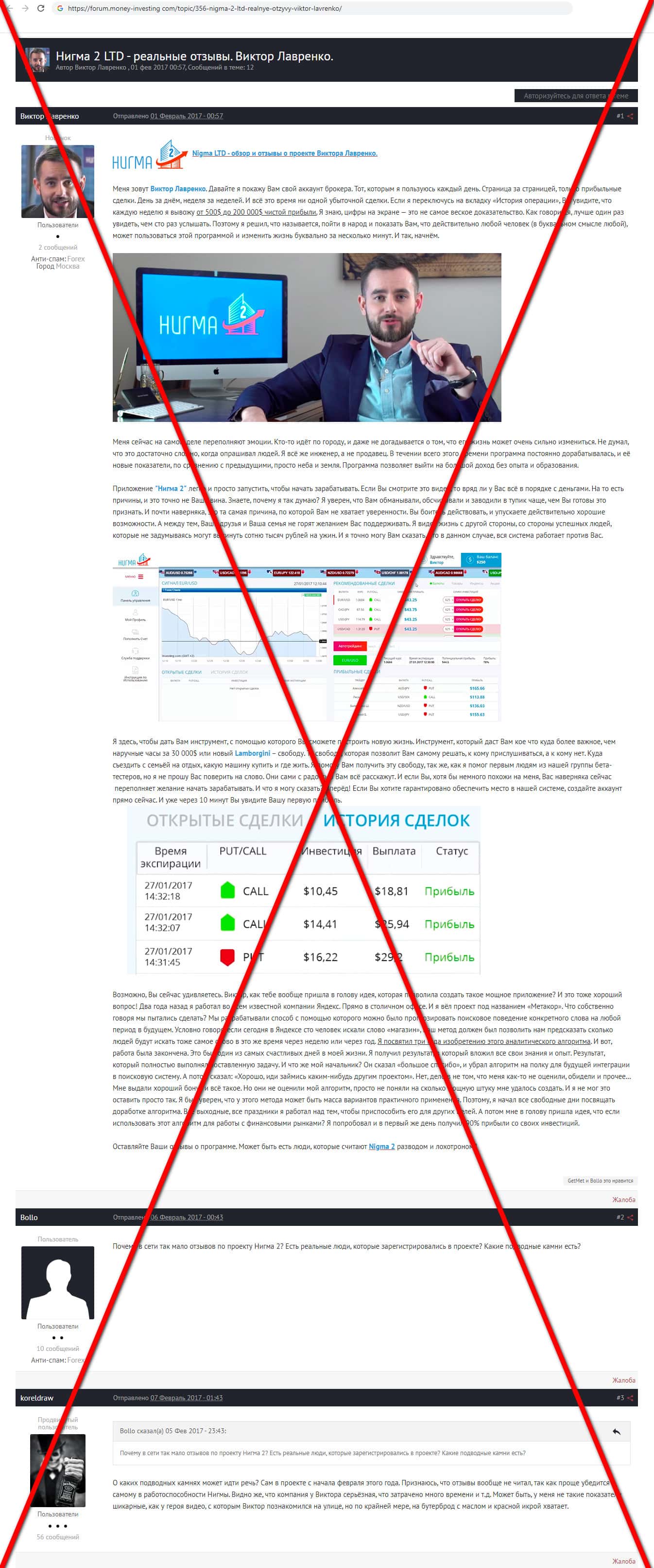 investingforum ru - сайт с заказными отзывами о кидалах Нигма 2