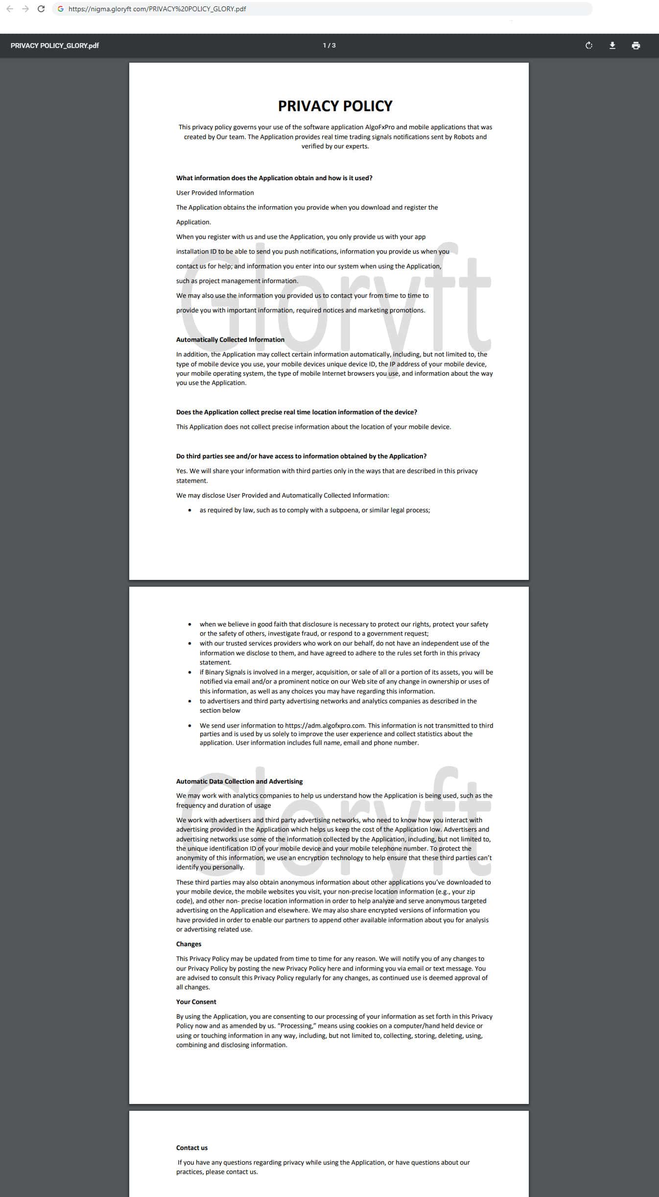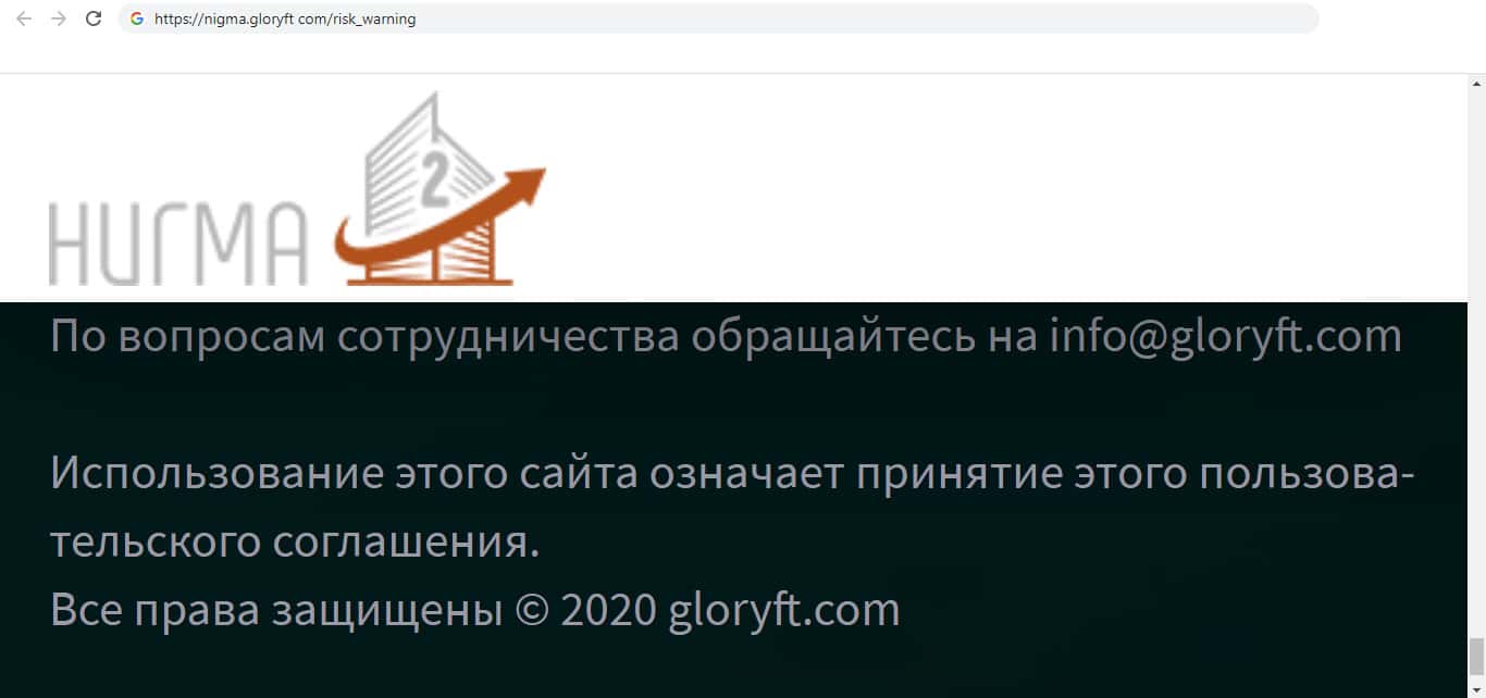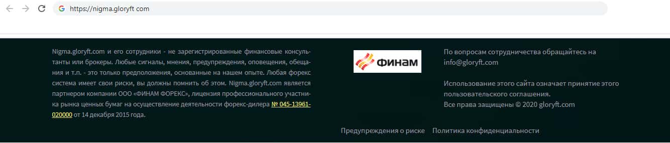 nigma.gloryft com - второй сайт компании мошенников Фор Трейдер