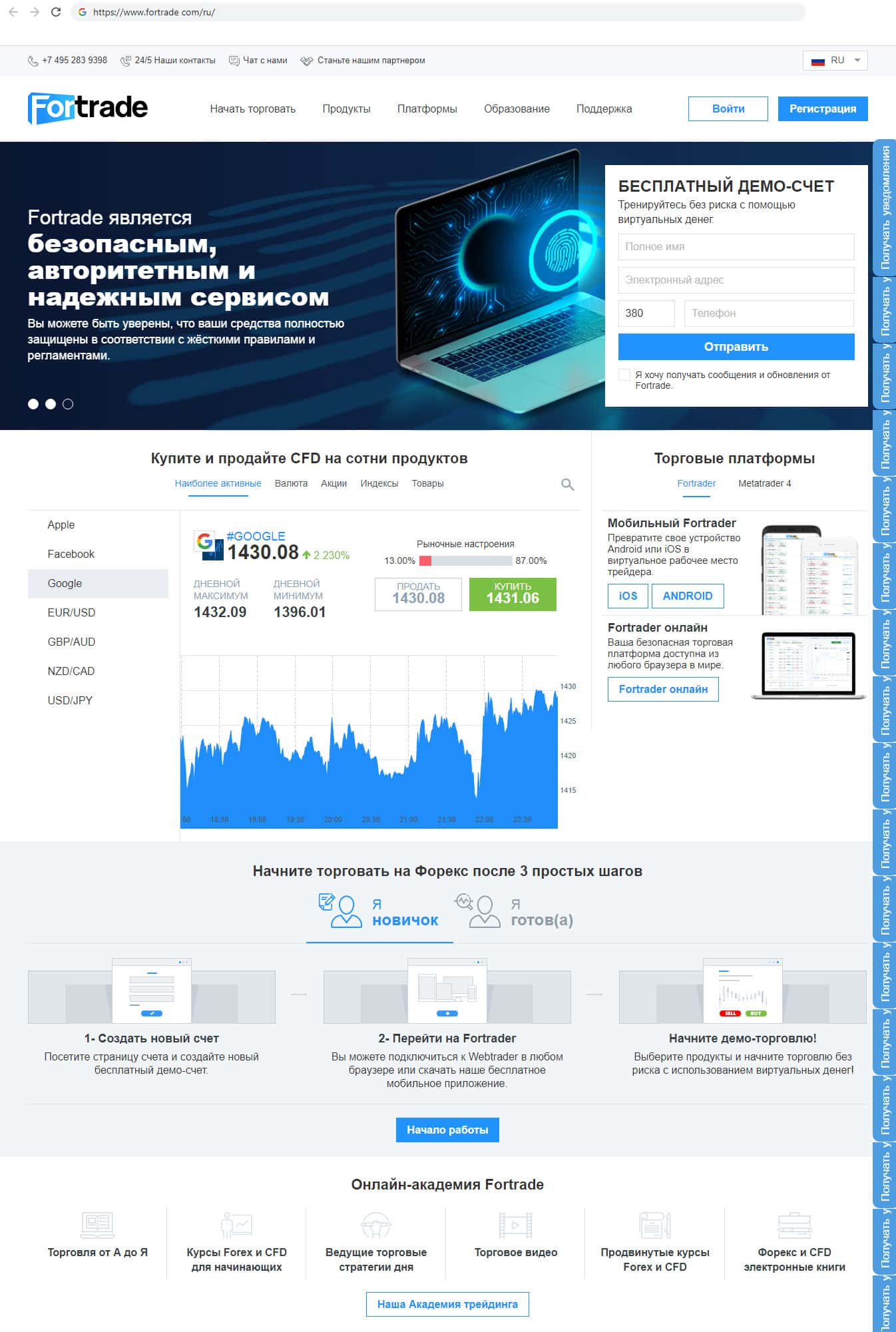 fortrade com - сайт на который перебрасывает после регистрации аккаунта Нигма 2