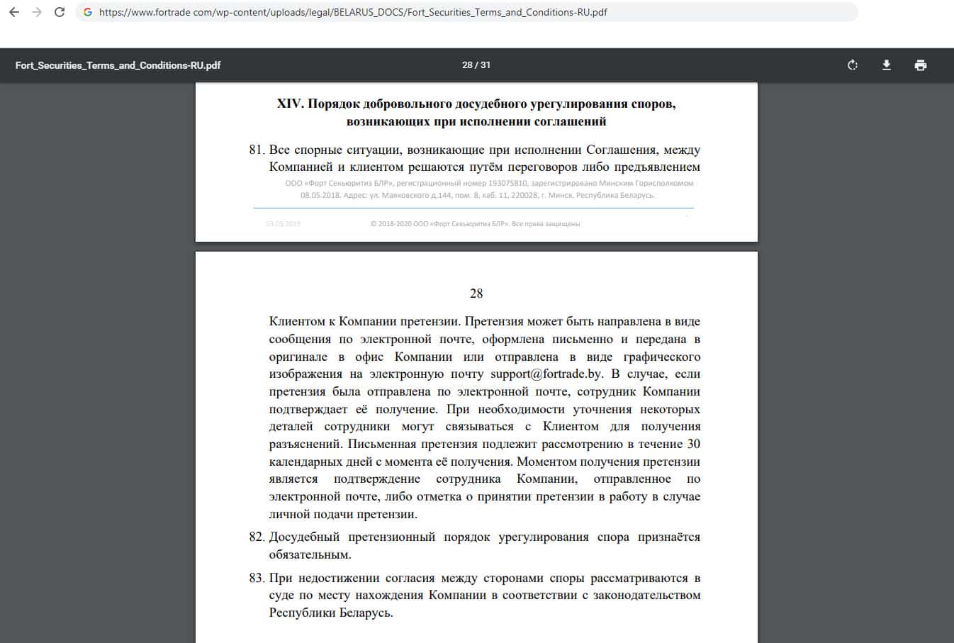 Так же при работе с компанией вы будуте следовать уже не тому договору который заключали с фирмой Нигма 2, а уже новому, который заключён без согласия клиента с компанией Фор Трейд. В данном договоре есть пункт, в котором говориться что любые вопросы или жалобы обсуждаются в виде письма, а если дойдёт до суда, то нужно ехать в Беларусь, где компанию никто конечно не найдёт.