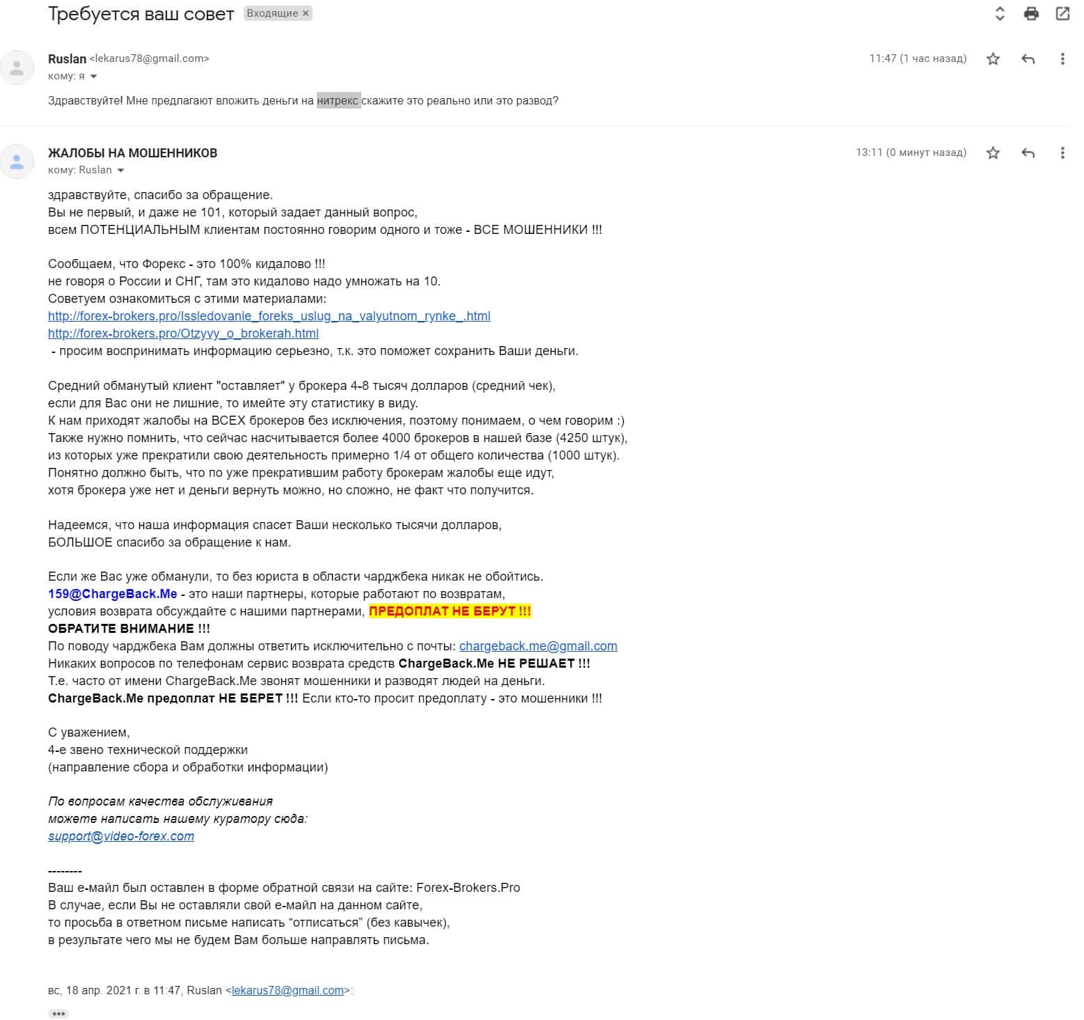 Обманщики Nitrex на своем официальном онлайн-ресурсе указывают адрес электронной почты, а именно: