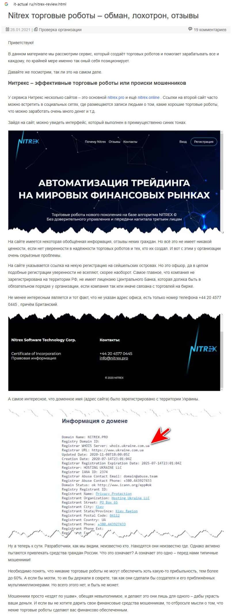 - Скам-организации Nitrex пользователи интернет-сети не доверяют
