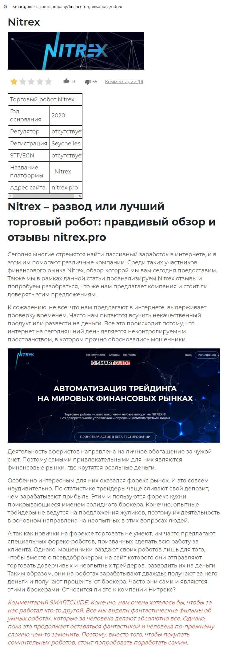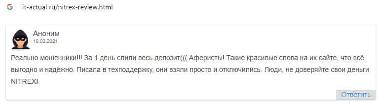 Скам-организации Nitrex пользователи интернет-сети не доверяют